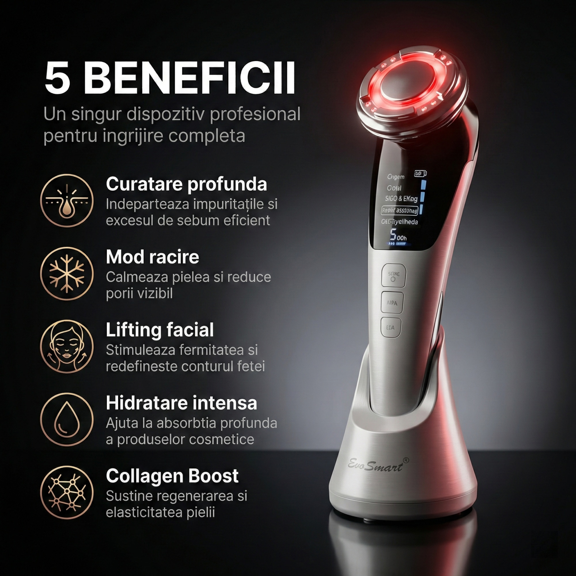 Aparat Facial 5 în 1 EvoSmart™ ST-01: Rasfat pentru Femeia Speciala