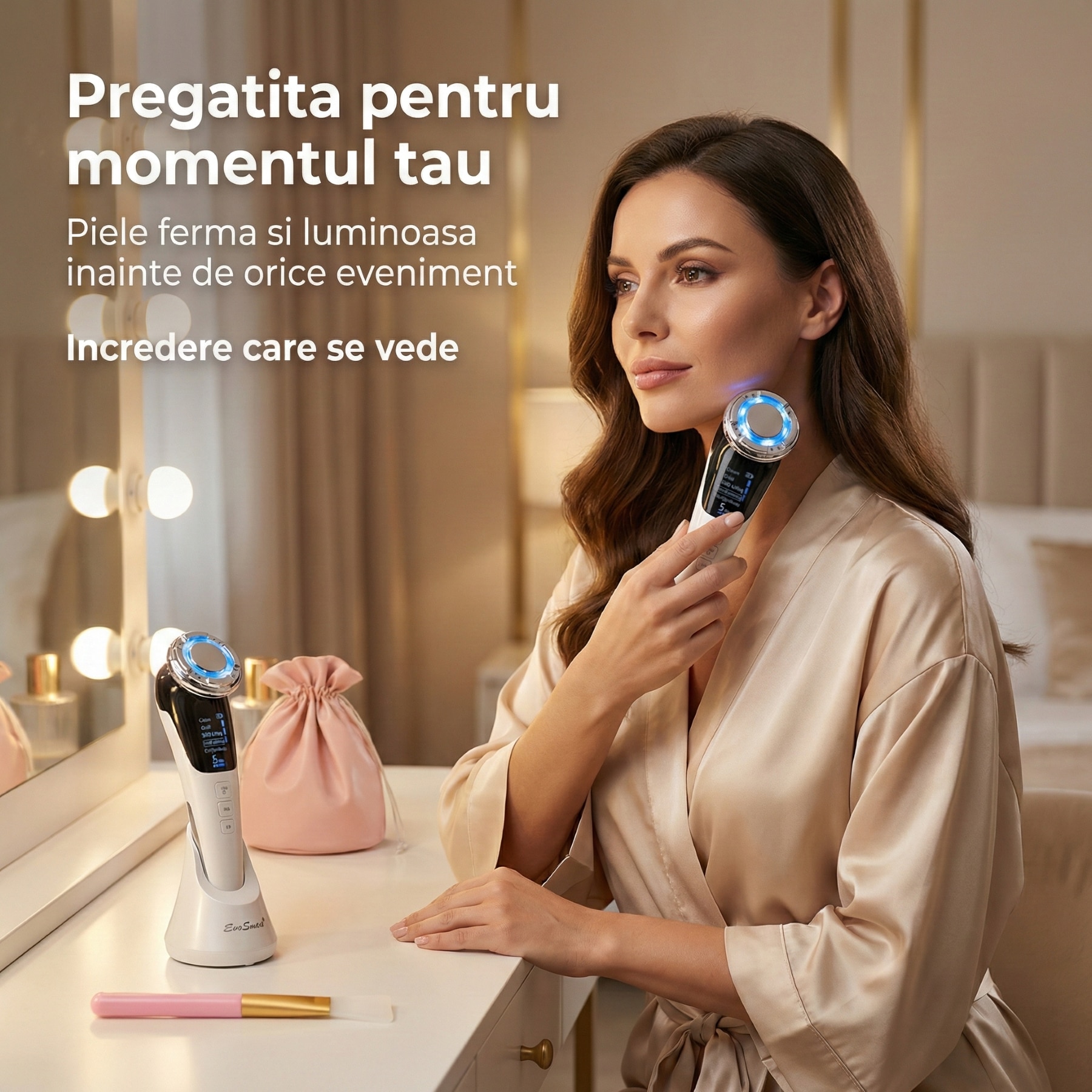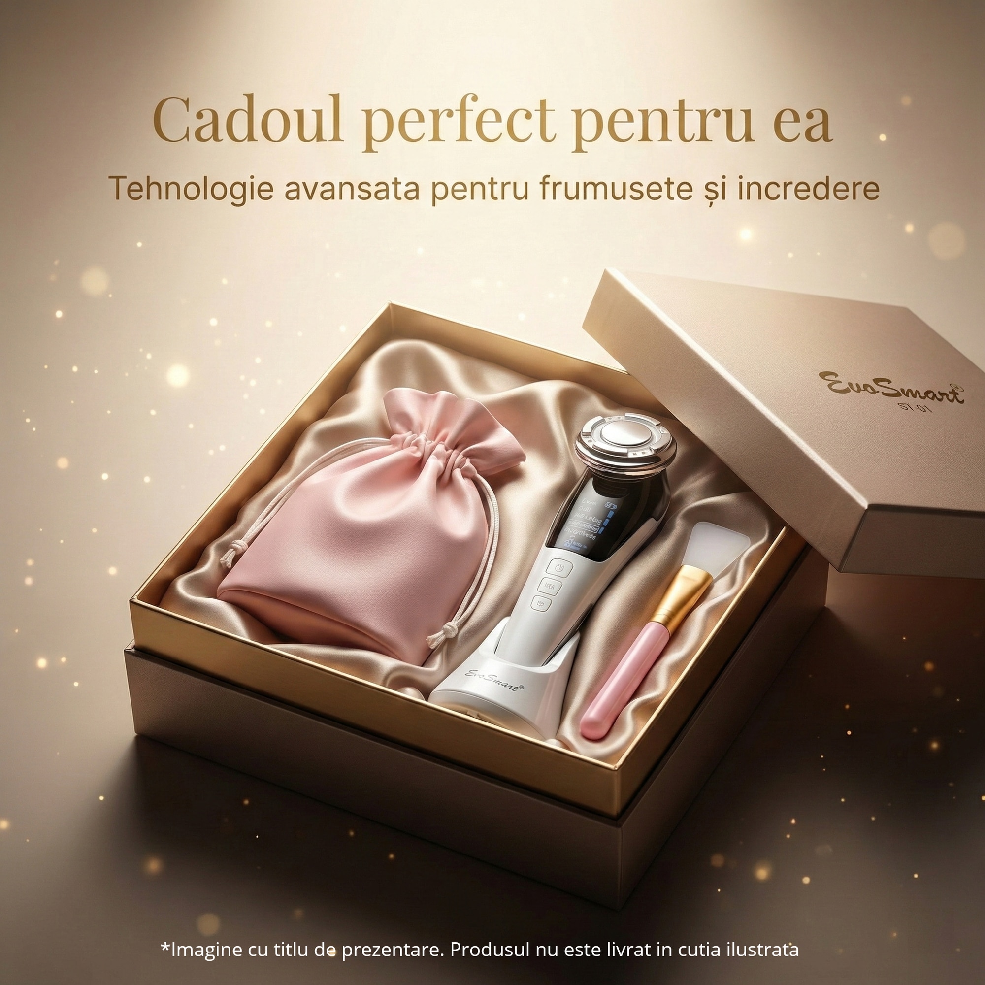 Imagineaza-ti momentul in care ii oferi acest cadou. Zâmbetul ei va spune totul! Aparatul EvoSmart™ nu doar ca îmbunătățește aspectul pielii, dar și creează momente de relaxare care o ajută să scape de stresul cotidian. Este un cadou ideal pentru soție, mamă, fiică sau prietenă, un gest de apreciere care va transforma rutina zilnică într-un ritual de frumusețe personalizat.